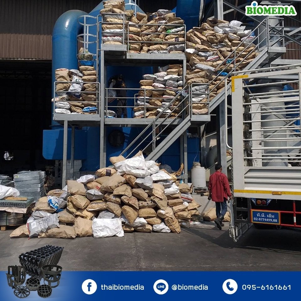 Biomedia ที่นิยมใช้กับระบบบำบัดอากาศ ถัง Scrubber ในโรงงานอุตสาหกรรม เพื่อดักจับกลิ่น และก๊าซต่างก่อนออกจากระบบพื้นที่ผิวสัมผัส 105 ตร.ม./ลบ.ม. ขนาด 60 x 22 mm. ปริมาณการใช้งาน 6,000 ตัว/ลบ.ม. การใช้งาน เทลงในถัง Scrubber แบบไม่ต้องจัดเรียง