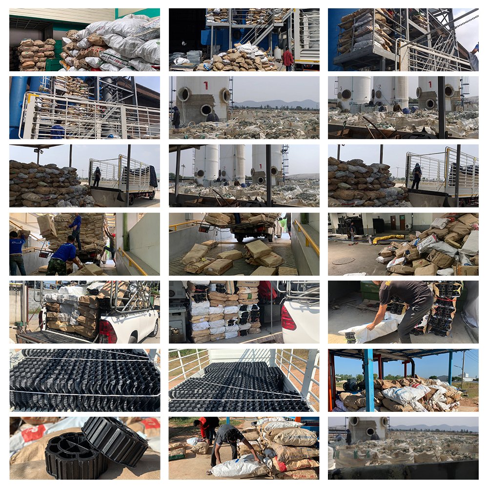 Packing Media สำหรับระบบบำบัดอากาศ Wet Scrubber ทำหน้าที่เป็นตัวกลาง เพิ่มพื้นที่ผิวระหว่างน้ำและอากาศ ในถังสครับเบอร์มีเดีย นิยมใข้ในโรงงานอุตสาหกรรมที่ต้องการบำบัดกลิ่น บำบัดมลพิษ ลักษณะตัวกลม สีดำ สามารถดักจับฝุ่นได้ดี เพิ่มการกระจายตัวของน้ำ